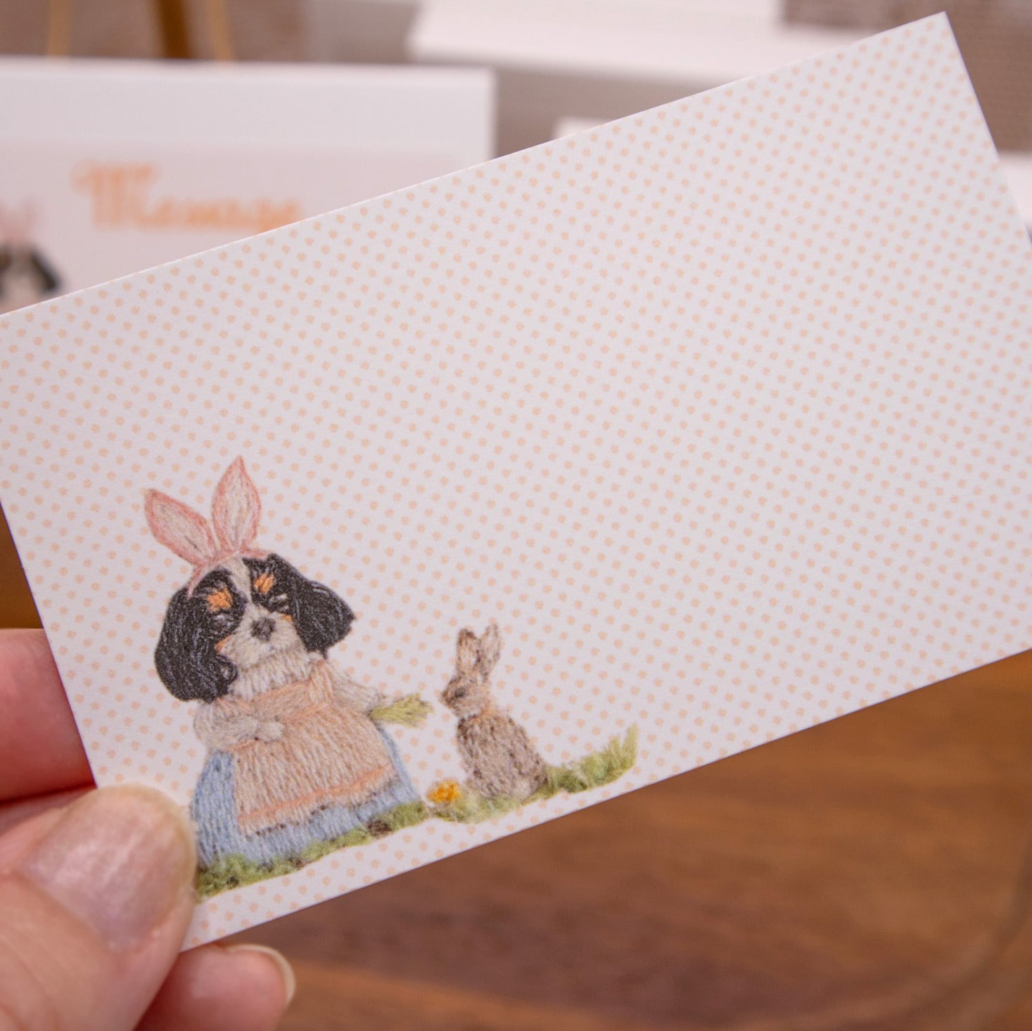 可愛い箱に収められた、刺繍の絵柄がプリントされたメッセージカードです。